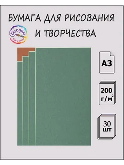 Бумага художественная цветная ( картон ) А3 200г м2 зеленая