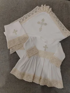 Крестильный комплект платье с пеленкой набор для девочки