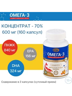 Омега 3 концентрат 70% ПНЖК камчатский 600 мг 160 капсул