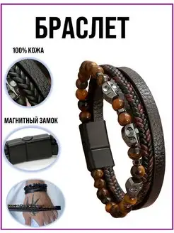 Браслет мужской женский на руку из камня, Тигровый глаз