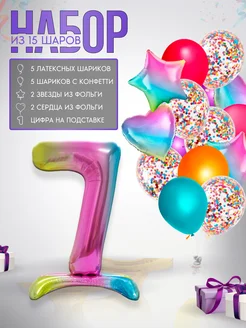 Набор воздушных шаров с цифрой 7 на подставке
