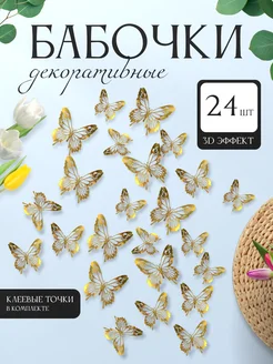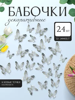 3D наклейки бабочки для декора и интерьера 24 штуки