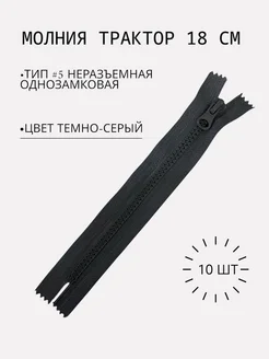 Молния тракторная #5 неразъемная пластиковая 18 см серая