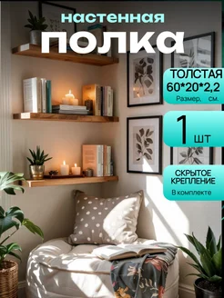 Полка настенная деревянная толстая 1 шт 60*20*2,2 см