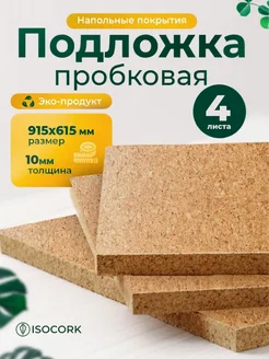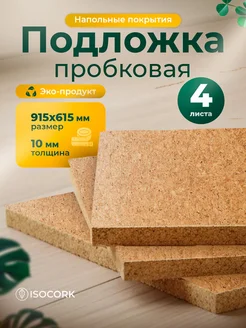 Пробковая подложка 10 мм под ламинат 4 листа 915х615 мм