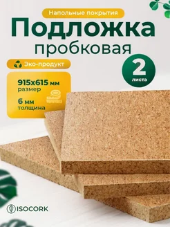 Пробковая подложка 6 мм под ламинат 2 листа 915х615 мм