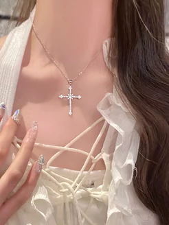 Подвеска на шею бижутерия крест y2k с цепочкой, стразами