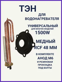 Тэн медный для водонагревателя 1500 вт с анодом и прокладкой
