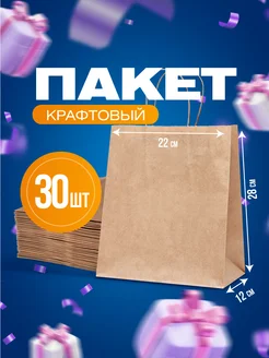 Пакеты крафтовые с ручкой 22х12х28 см, 30шт