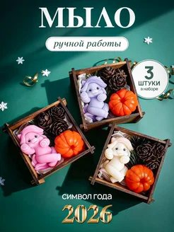 Набор мыло новогоднее лошадь с мандарином и шишкой 3 шт
