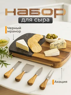 Набор сервировки сыра подарочный из акации и мрамора Date