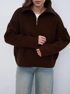 Коричневый свитер с горлом оверсайз