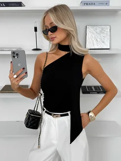 Черный топ под пиджак вечерний с шарфом