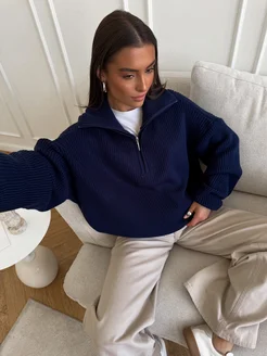 Синий свитер с горлом оверсайз
