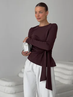 Коричневый лонгслив облегающий с узлом
