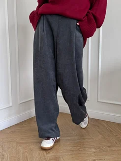 Серые штаны широкие брюки вельветовые