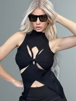 Черный топ с узлом нарядный