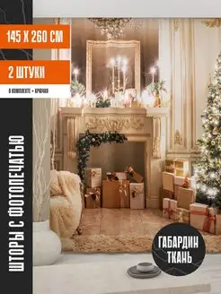 Фотошторы новогодние для гостиной и спальни 145х260см, 2 шт
