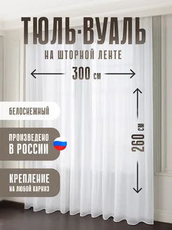 Тюль в спальню и гостиную длинная на ленте, 300х260 см
