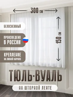 Тюль в спальню и гостиную длинная на ленте, 300х270 см