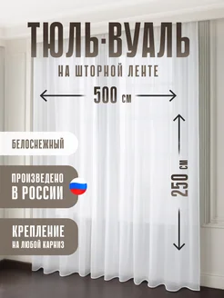 Тюль в спальню и гостиную длинная на ленте, 500х250 см