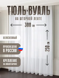 Тюль в спальню и гостиную длинная на ленте, 300х250 см