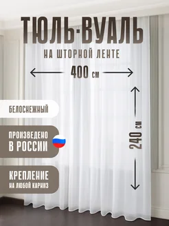 Тюль в спальню и гостиную длинная на ленте, 400х240 см