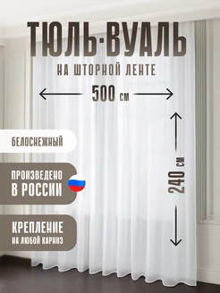 Тюль в спальню и гостиную длинная на ленте, 500х240 см