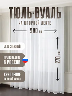 Тюль в спальню и гостиную длинная на ленте, 500х270 см