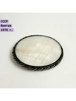 Брошь овальной формы, металл, перламутр, серебрение, СССР