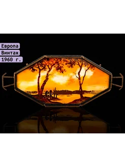 Поднос многоугольной формы с изображением речного пейзажа