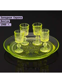 Набор рюмок на подносе, стекло, урановое, пресс, Западная