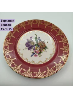 Тарелка декоративная, украшенная цветочным букетом, фарфор