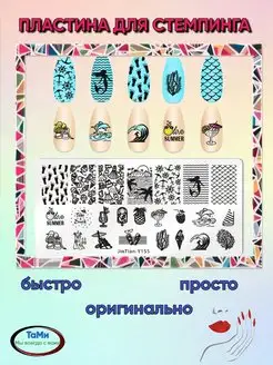 Пластина для стемпинга пляж дельфин русалка коктейли