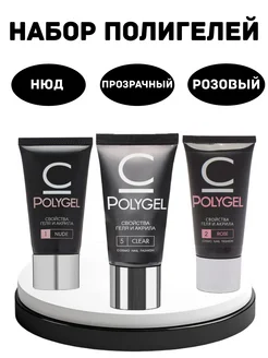 Полигель для наращивания и моделирования ногтей набор 3 шт
