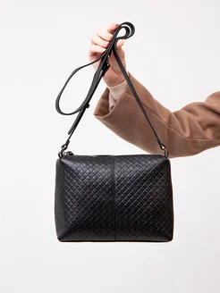 Кожаная чёрная сумка компактная