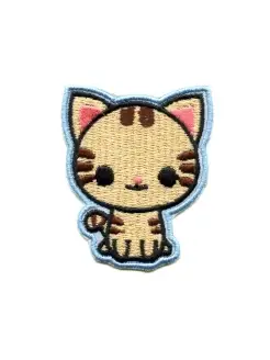 Нашивка на одежду детская термоаппликация Котик бежевый