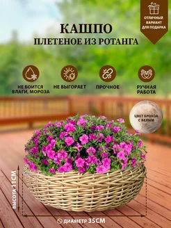 Кашпо для цветов комнатных, горшок из ротанга 12 литров