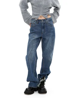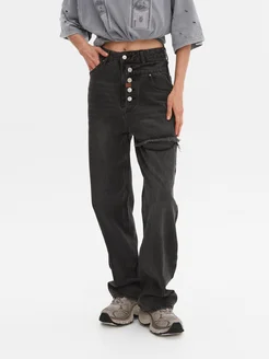 Джинсы прямые с разрезом