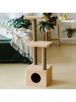 Домик для кошек с двумя полками 37 х 37 х 111 см бежевый