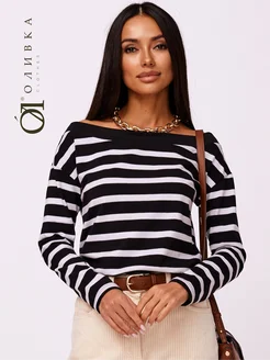 Лонгслив тельняшка оверсайз со спущенным плечом