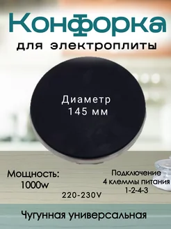 Конфорка электрическая чугунная экч 145 1,0 кВт с проводами