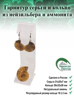 Гарнитур серьги и кольцо из нейзильбера и аммонита