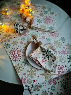 Дорожка столовая Новогодняя 40х165см Снеговик и Щелкунчик