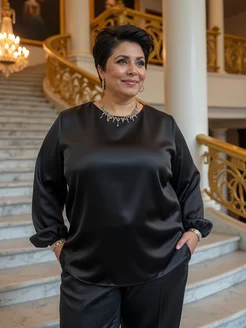 Блузка шелковая больших размеров с длинным рукавом