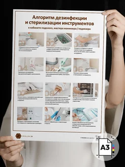 Плакат Алгоритм дезинфекции и стерилизации инструментов А3