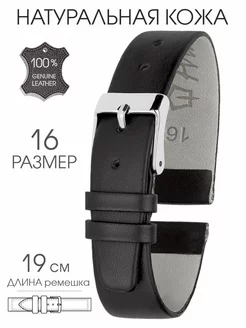 Ремешок браслет для часов из натуральной кожи 16 мм черный