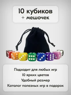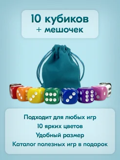 Набор 10 Кубиков игральных + Мешочек бирюза