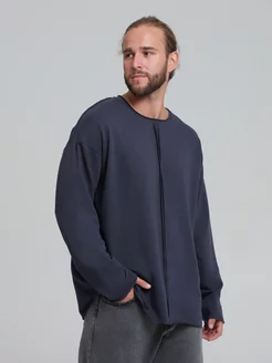 Лонгслив оверсайз синий джемпер свитшот приятный