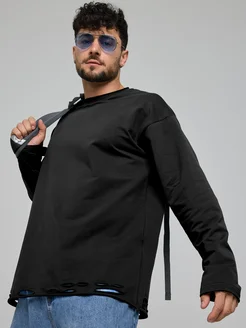 Лонгслив оверсайз черный кофта свитшот рваный с дырками